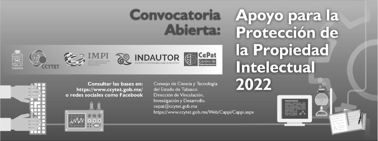 El CCYTET convoca a autores, inventores, investigadores, tecnólogos, empresas, instituciones de educación superior y centros de investigación establecidos en Tabasco, para que participen en el otorgamiento de apoyos para el registro de Propiedad Industrial o derechos de autor.